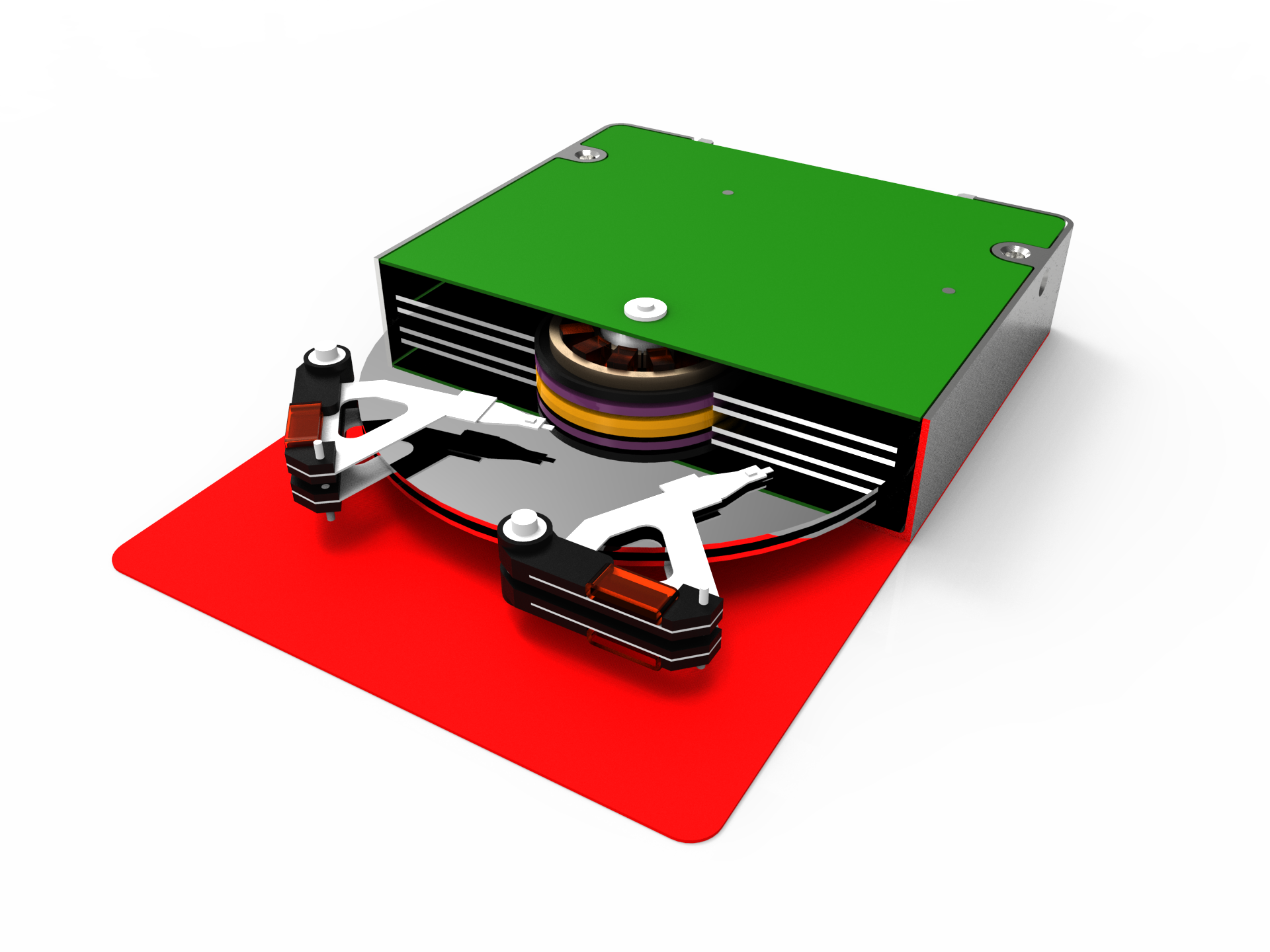 Conceptual Model for 4 platter, 8 actuator hard drive.